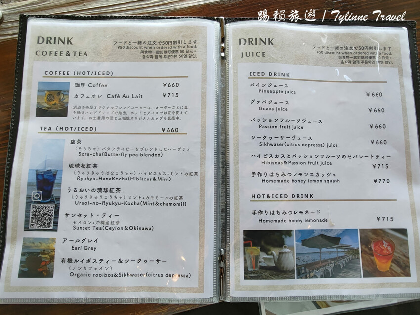 酒精類的飲品也有,不過是自駕的話就要特別注意不要酒後駕車喔~