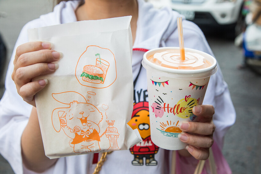 金龍木瓜牛奶喝起來甜度適中,木瓜味相當濃郁,喜歡喝木瓜牛奶的朋友一定會喜歡,草莓蛋吐司吃起來鹹鹹甜甜,吐司內側有塗上奶油,吃起來香滑可口,一定要嘗試看看