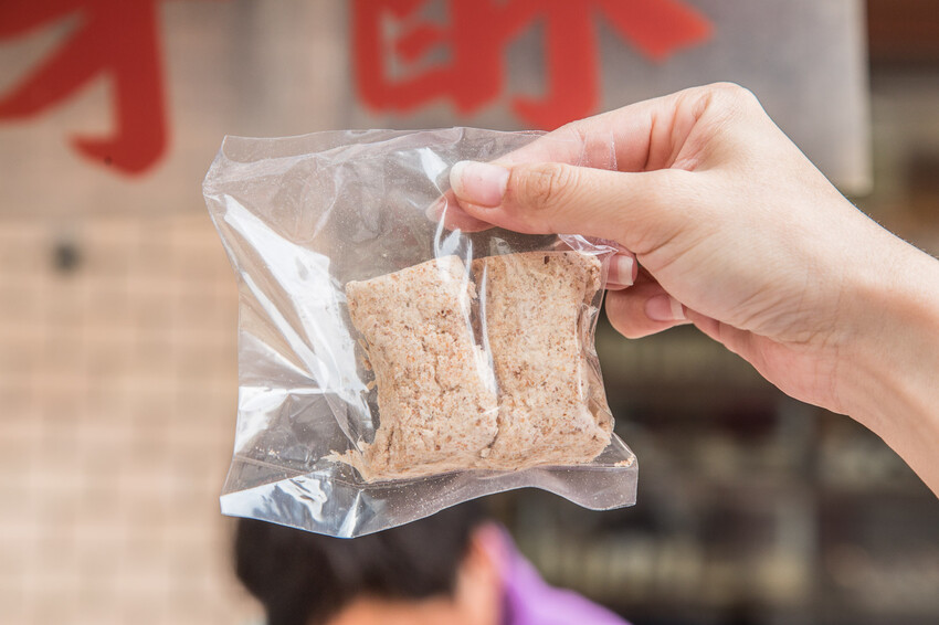 麥芽酥裡面還有像麵茶夾在夾層中,有著麥芽糖的糖香及麵茶的米香,入口酥香甜而不膩,小袋裝也超有古早味的