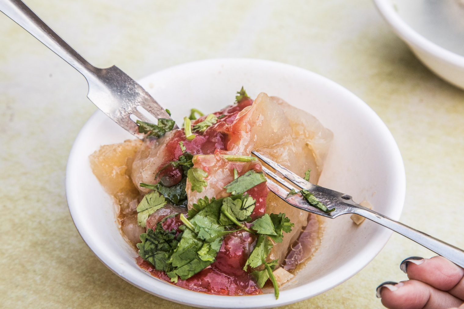 必點的還有炒鴨血糕跟鴨肉切盤,鴨肉切盤是用腿肉,還貼心去骨,炒鴨血則是加了特製醬料去炒,醬香十足,口感軟糯,同樣不用花大錢,銅板價就能吃得超級飽!
