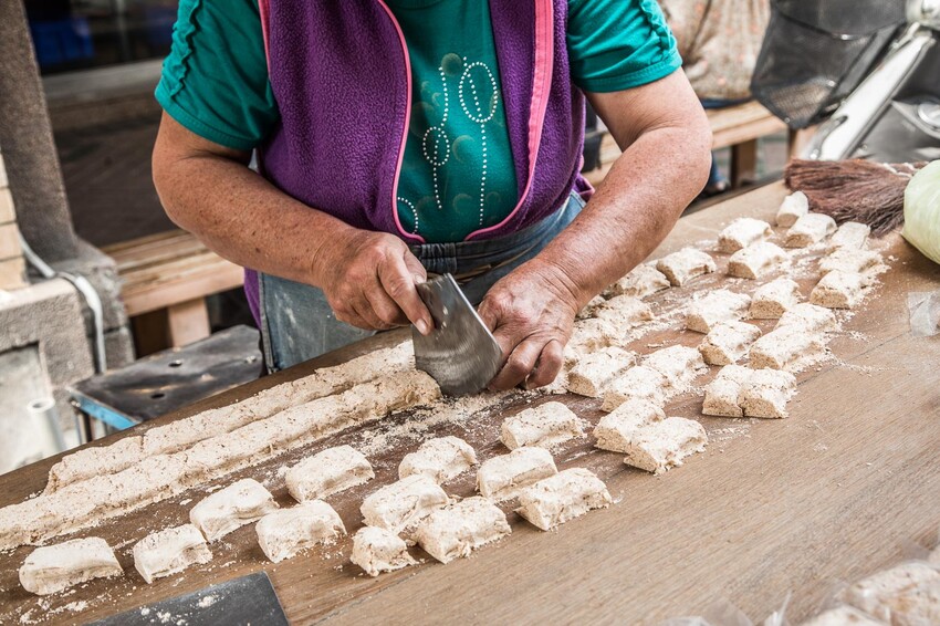 招牌的三色湯圓是採用濁水米的舊米浸泡三小時後,再以 熟練的經驗製作成圓仔粹,並加入大甲的新鮮芋頭及竹山的蕃薯,製作出三種口味的湯圓,來這裡還可以看到湯圓的製作過程呢