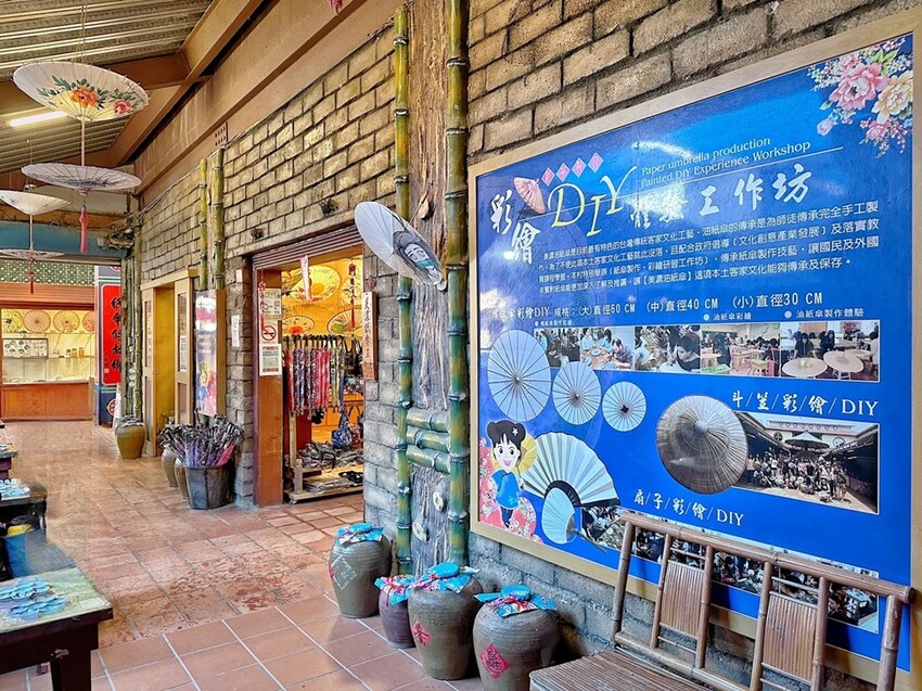 在園區內也販售不少客家米食、油蔥酥等以及不少DIY可體驗,像是紙傘彩繪、客家擂茶DIY、砂畫、手拉坏等,當然也有販售不少紙傘、童玩、伴手禮區等,但園區內大多的室內區域都是不給拍照、攝影喔!