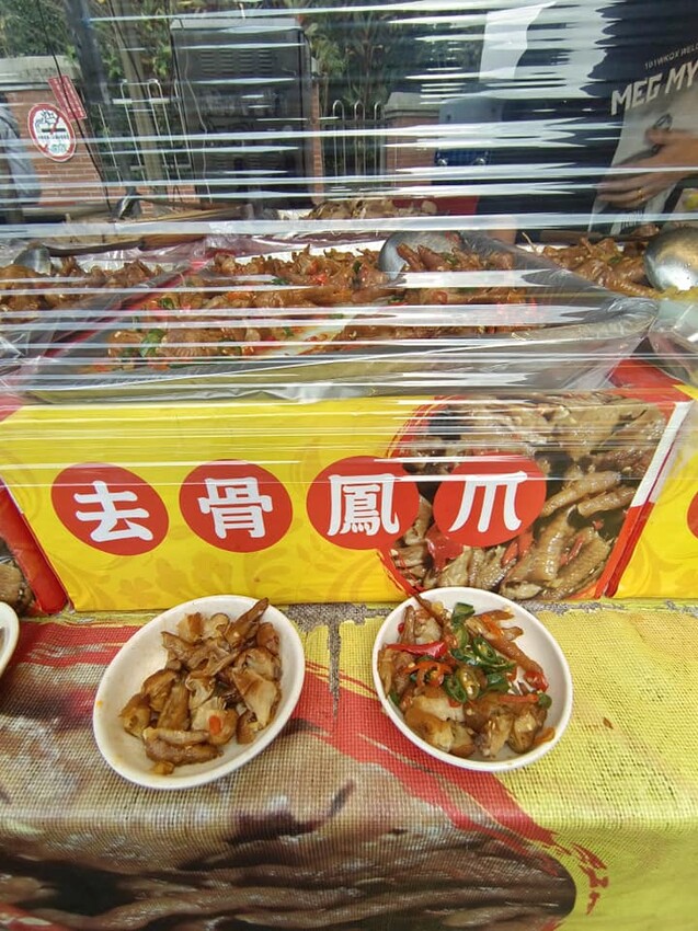 鴻福源去骨鳳爪在攤位前都有提供免費試吃的小碟子,顧客可以先試吃,滿意後再決定要買哪一種小菜,帥哥老闆挺大方的,這點值得拍拍手