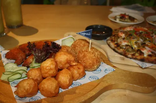 跟我們說..我們的pizza已是泰式口味了,所以推薦我們烤雞翅用BBQ醬,才不會吃到相同口感