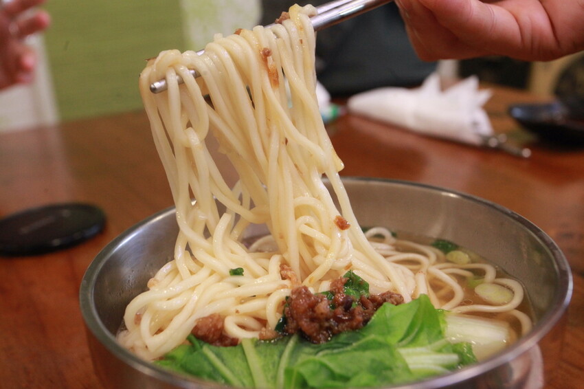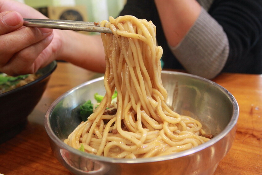 這麵條是一般陽春麵麵條不會軟爛,麻醬滋味足整體口感還不錯吃。