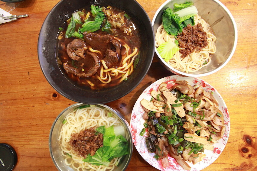 今天就點紅燒牛肉麵110元、麻醬乾麵60元、陽春麵50元及綜合滷味100元等。