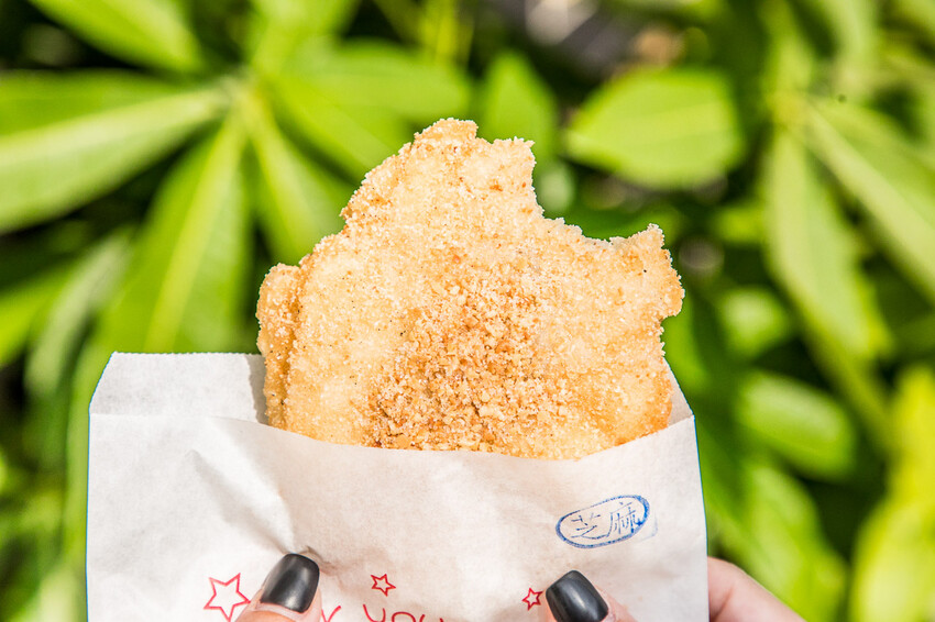 我們大概等了近四十分鐘才拿到,剛起鍋用紙袋裝有夠燙的,袋子上都有印口味不用擔心會拿錯,阿婆炸麻糬其實不大,但還蠻厚的,外層裹滿滿花生糖粉是粗粒的那種,花生香氣很濃郁