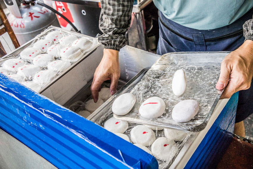 麻糬都是現炸的,這些圓圓白白的麻糬都是老闆一大早就起來做的,因為都是純手工製作,所以數量有限,每天賣完就沒有了,最快記得好像是開店一個小時多就完售