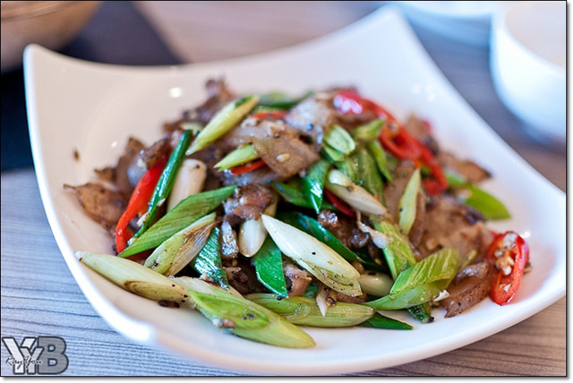 用大量蒜苗辣椒快炒的豬五花看起來頗超值~