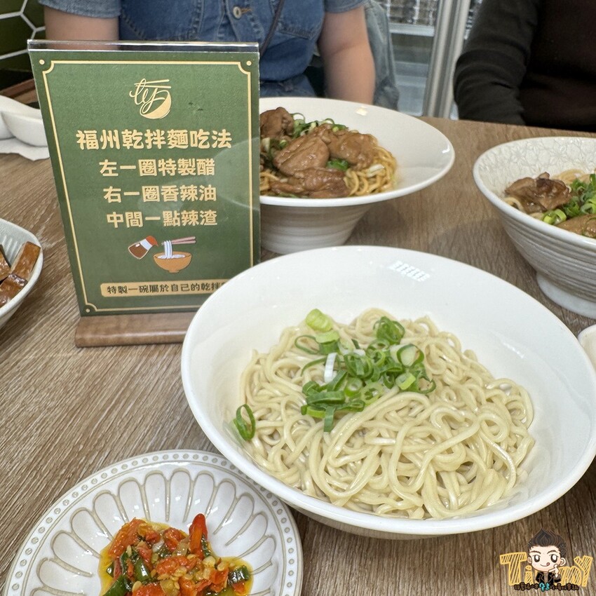 招牌福州乾拌麵加入辣油、辣渣和特製醋,多層次的風味讓我們很意外地驚豔。