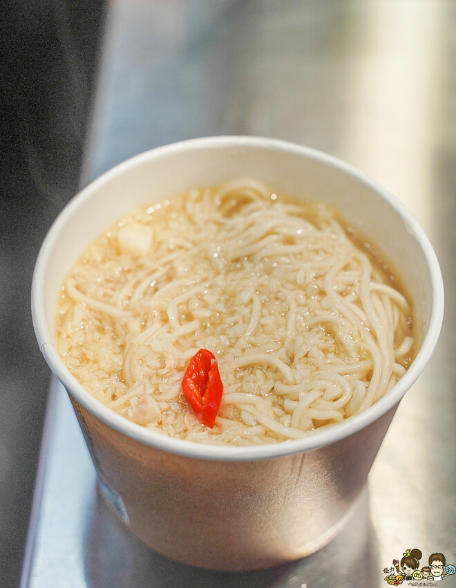 店家挑選了汕頭麵,熬煮後淋上靈魂蒜香醬汁,秒殺吃完