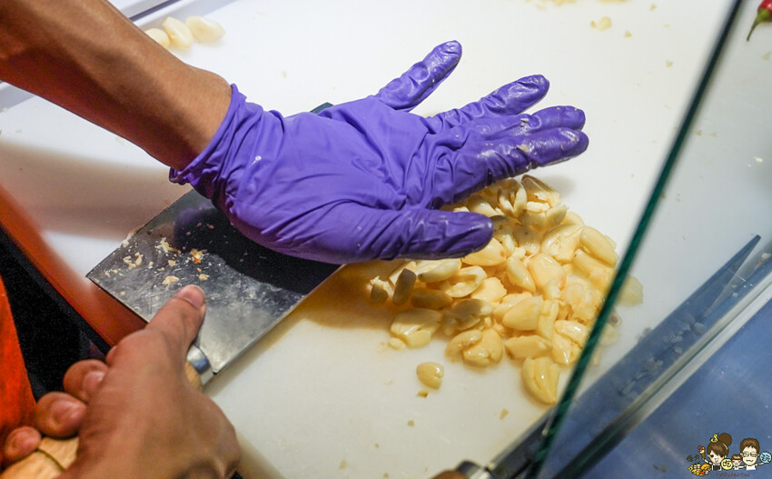 店家也堅持蒜頭都要去蒂頭,現場剁碎
