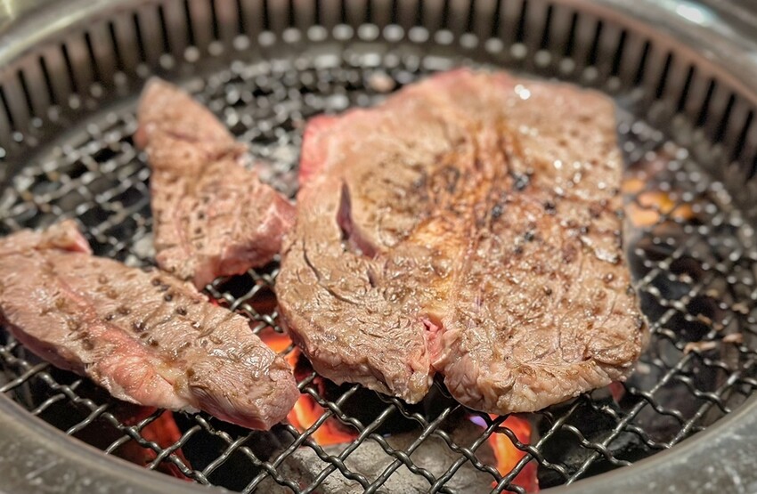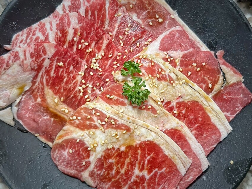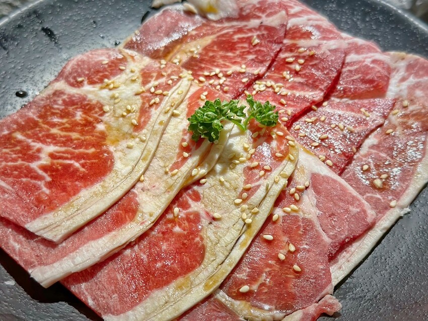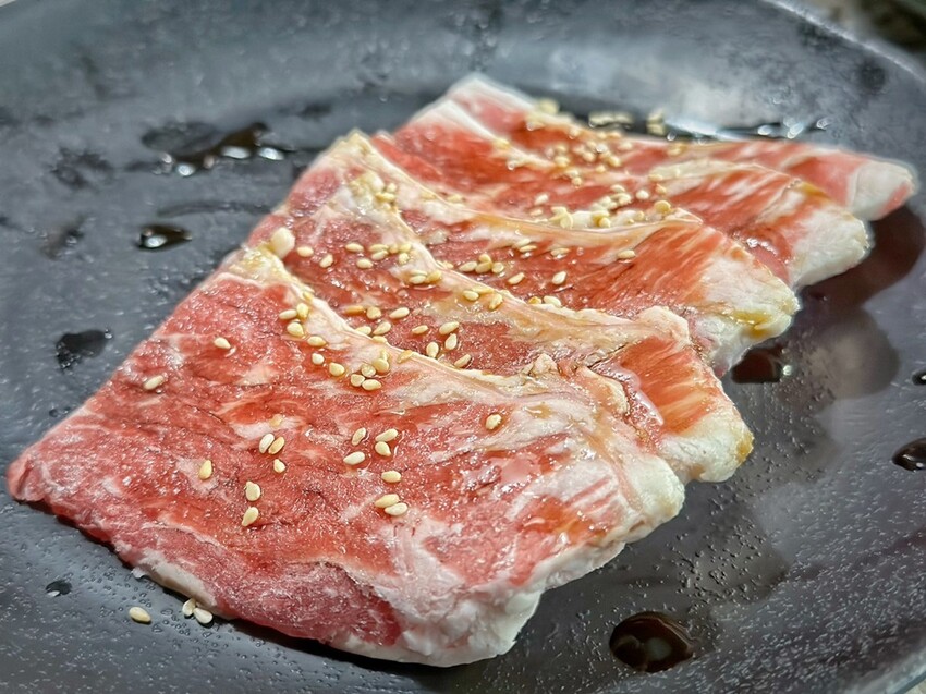 Oh!Yaki精緻炭火燒肉-中壢店的牛肉選擇真的很多,大推699元方案就有的16盎司的安格斯嫩肩牛排,當然我們也沒有錯過899元方案的澳洲M9和牛、嫩肩牛、霜降牛等。也要說他們家的牛肉肉質油花分布的很均勻,重點是厚度有,烤起來也不會黏網,吃起來也超過癮。