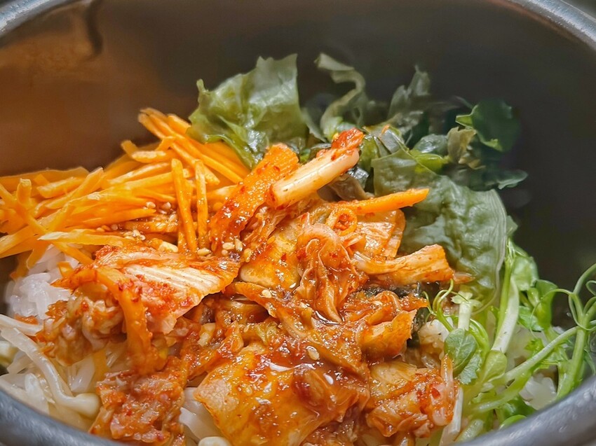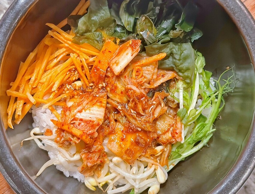 點了一份韓式石鍋拌飯、牛滷飯、鮭魚味噌湯來吃,當然也還有墨西哥烤餅、白飯等可以點選,而我們家的檸檬妹超愛吃牛滷飯!