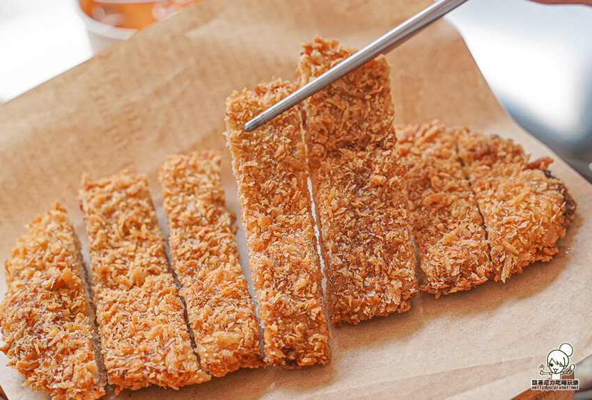 油炸到金黃色澤,讓麵包粉咬下有細膩層次脆度