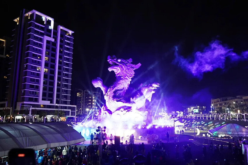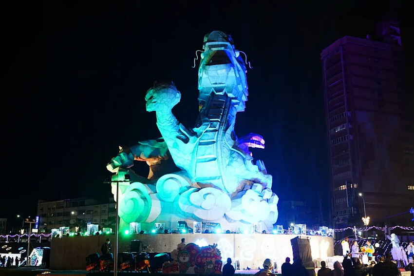 主燈的龍居然還會噴煙耶!這真是太酷了,看著龍頭冒出繽紛的煙霧,原來是龍嘴巴吐煙霧。這絕對是燈會中一個讓人留下深刻印象的驚奇亮點,快來感受這場煙霧龍的魔幻氛圍吧!