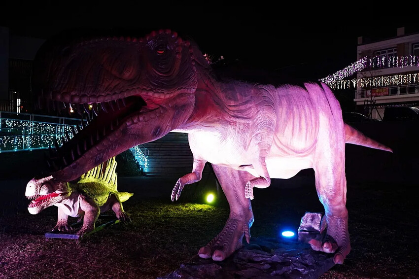 2024員林燈會開張啦!一走進去就被迎接著超可愛的恐龍造型給吸引住了,特別是那隻戴著蛋殼的恐龍,實在太逗趣啦!