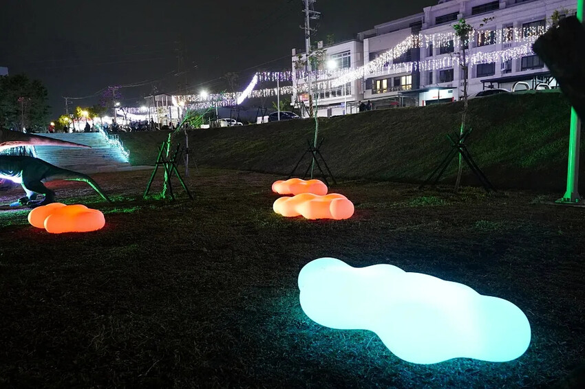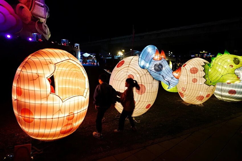 恐龍蛋造型的花燈也太可愛了,好多人都爭相來和它合影喔!大家都在那裡拍照,好像每個人都想要與這可愛的花燈留下一個美好的瞬間。