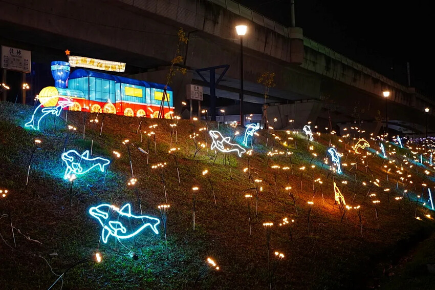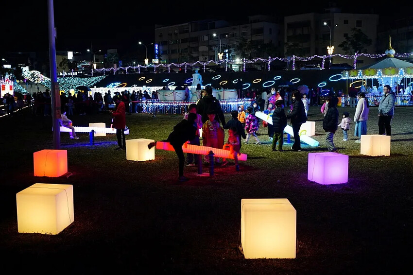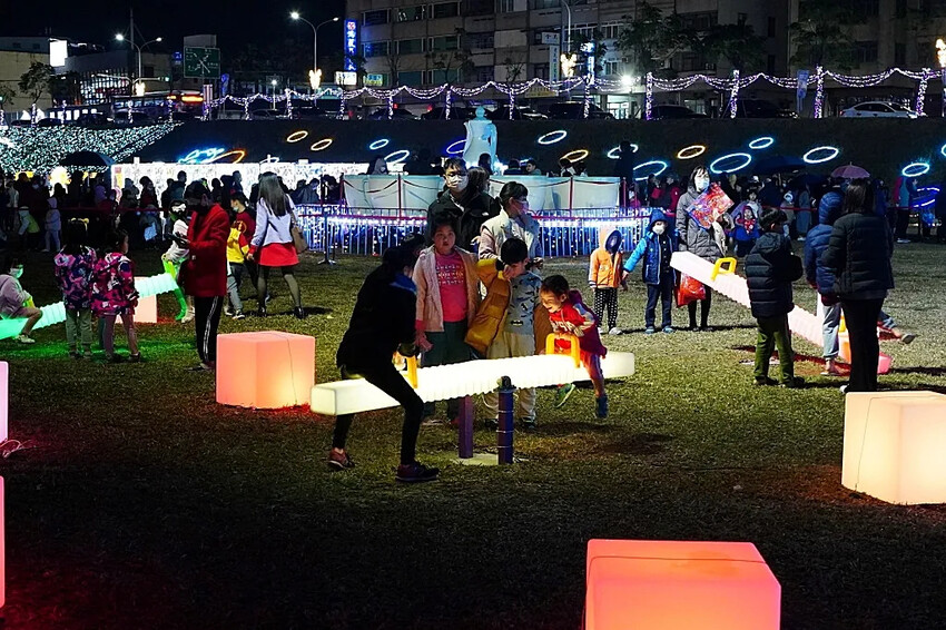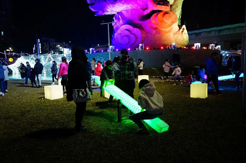 還有翹翹板的花燈耶,超多小朋友在那邊盡情玩得開心喔!整個場面充滿歡笑聲,真的好有童趣。趕快過來看看吧,保證你也會被這些歡樂的燈飾給感染,一定玩得超開心!