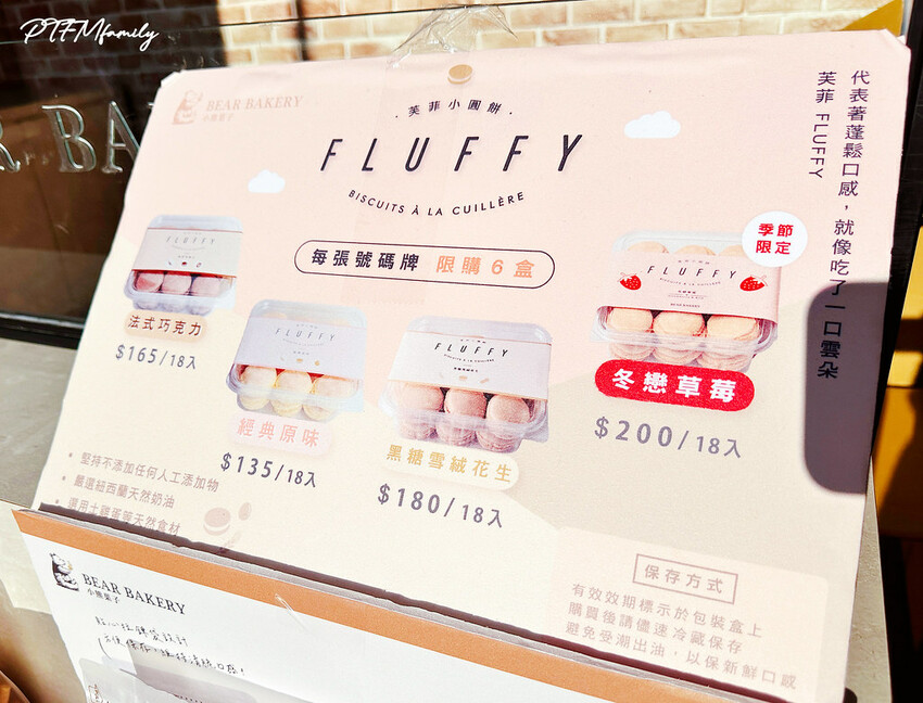 「Fluffy 芙菲小圓餅」來自彰化的台式馬卡龍快閃限定販售,霏霓都一直超愛這甜點,買了最愛的草莓和奶香原味給她們當點心