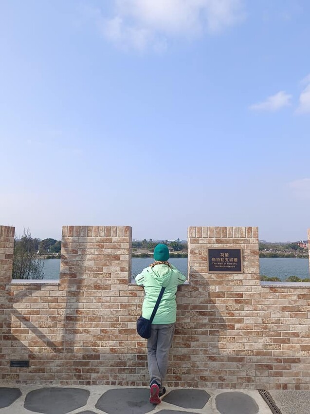阿木趴在城牆上看安平港的背影也不錯,趁她不注意偷拍一張