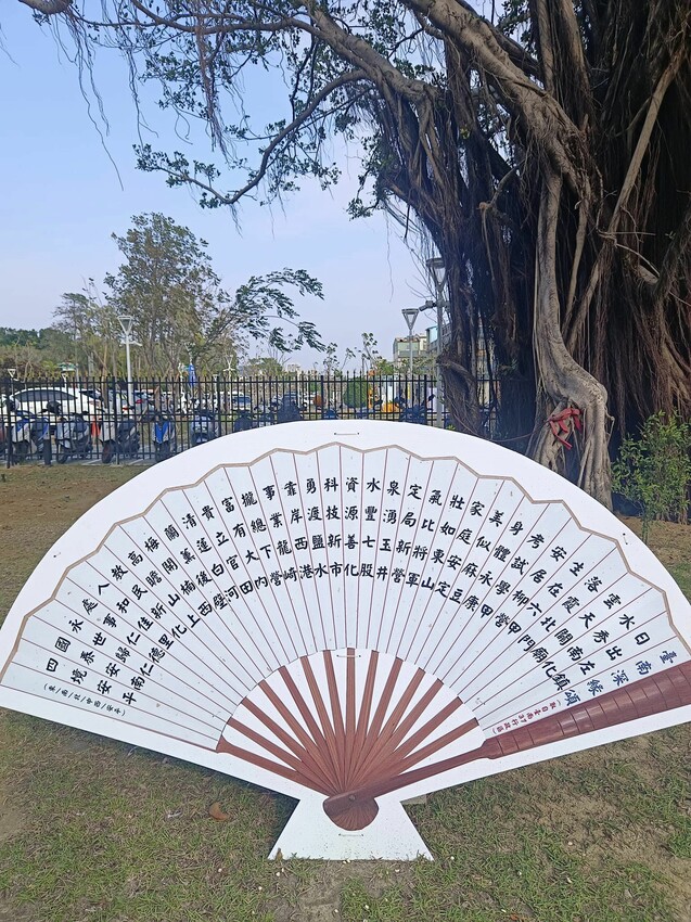 無意中還在院子內發現這把有趣的扇子,上面把台南37個行政區都用四個字的成語帶入