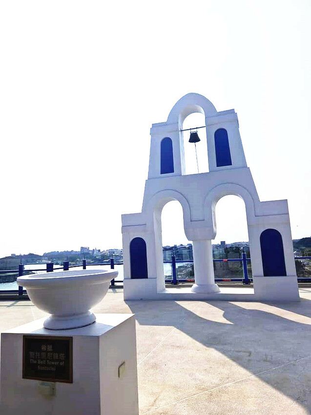 頂樓必拍難波萬就是這個仿希臘的聖托里尼鐘塔,每個遊客都要來這裡拍張照,順便敲一下鐘,才算到此一遊!因為我們還要回家圍爐,沒有待到傍晚夕陽西下的時候,不然來此拍落日應該更美