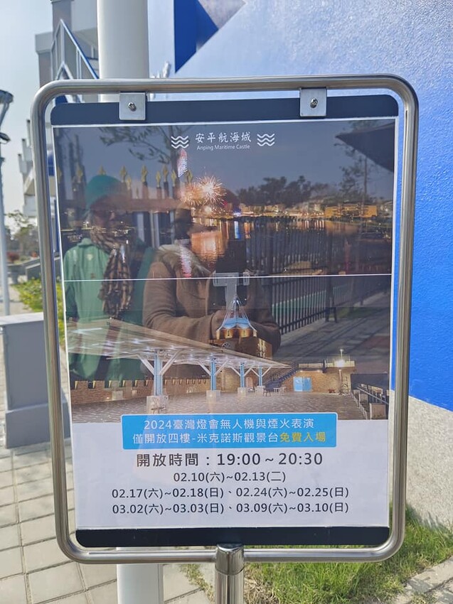 目前適逢2024台灣燈會在台南,安平航海城還特地開放四樓觀景台讓大家免費入場參觀,每逢假日都有壯觀的無人機表演,建議大家不妨到此來拍照,絕對比我傻傻地站在林默娘公園的山坡上拍得更清楚喔!