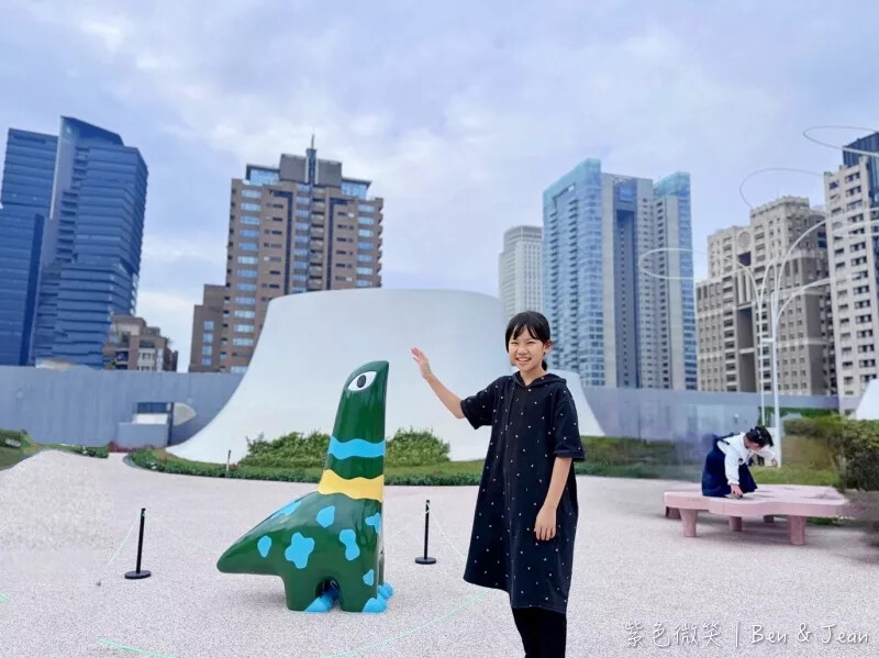 【台中國家歌劇院】的六樓是頂樓空中花園,可以看到白色曲牆的頂端。同時這次也看的到小綠龍家族的展出,增加了不少趣味性