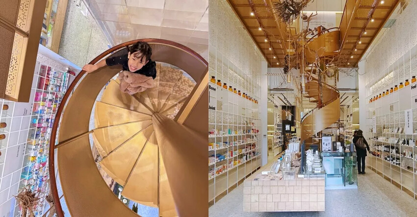 分子藥局》全台最美文青藥局!夢幻玫瑰金旋轉樓梯超好拍,台中國家歌劇院旁