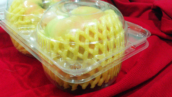 蘋果被小心翼翼地呵護得很好,套著網格泡棉外還用超堅固的塑膠盒裝著,
