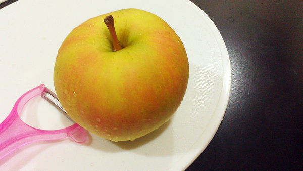照片拍不出來的還有一邊削皮一邊滲出來的蘋果汁,所以在削皮的當下完全能夠感受到它的香甜多汁,