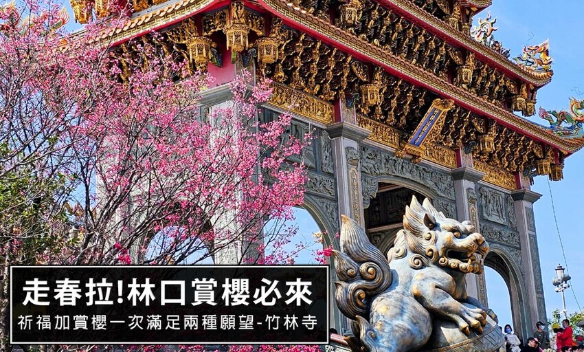 來林口竹林寺除了祈求外,也能欣賞到櫻花,真的是件浪漫的事情