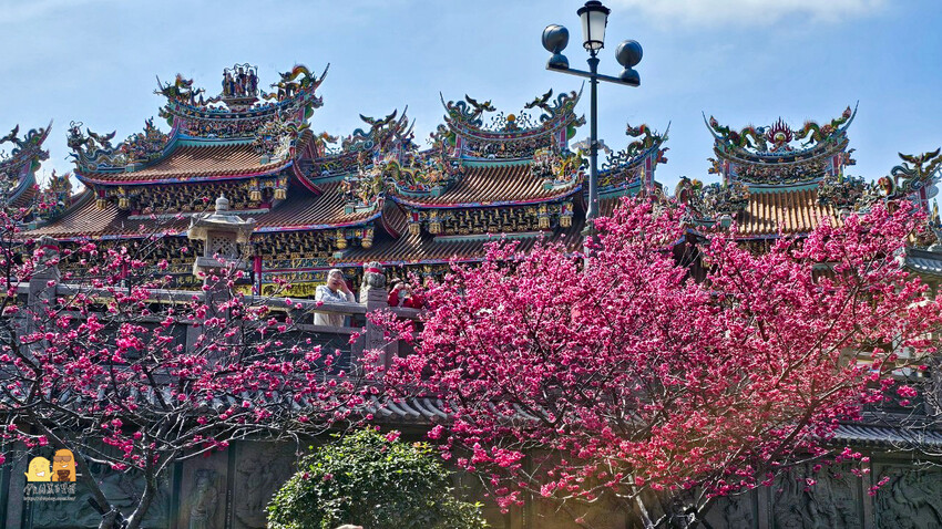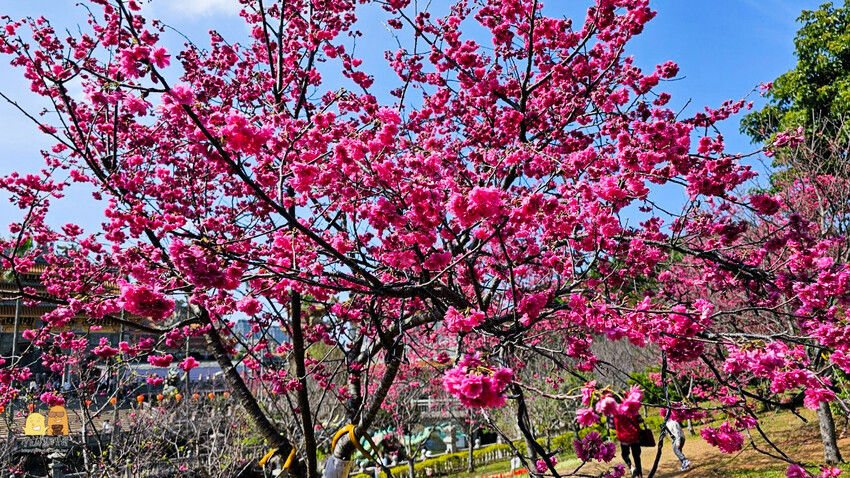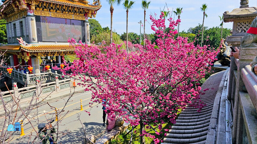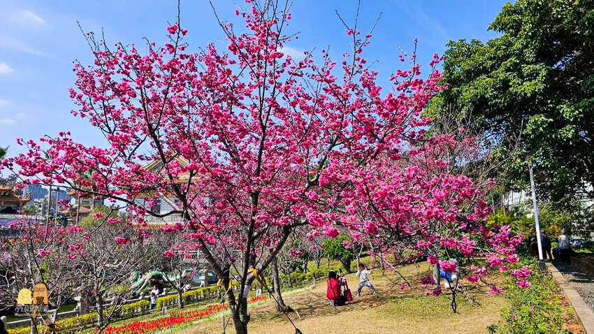 以往櫻花都跟日本比較有關係,這次櫻花與中式廟宇合影,畫面真的也是蠻美的
