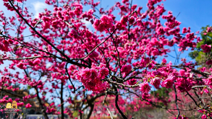 雖然竹林寺的櫻花沒有像是三峽大熊櫻花林那滿山滿谷的櫻花林,但取而代之的是更有嚴肅莊嚴的廟宇做襯托
