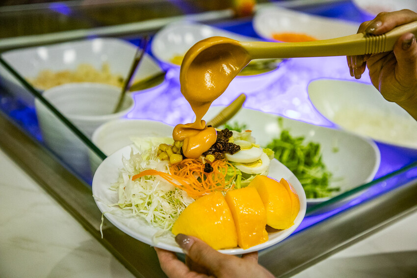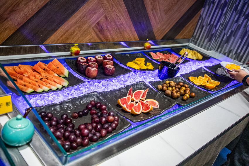 水果區,常備十種水果,其中不乏高價水果,芒果、火龍果等等,都是無限量供應