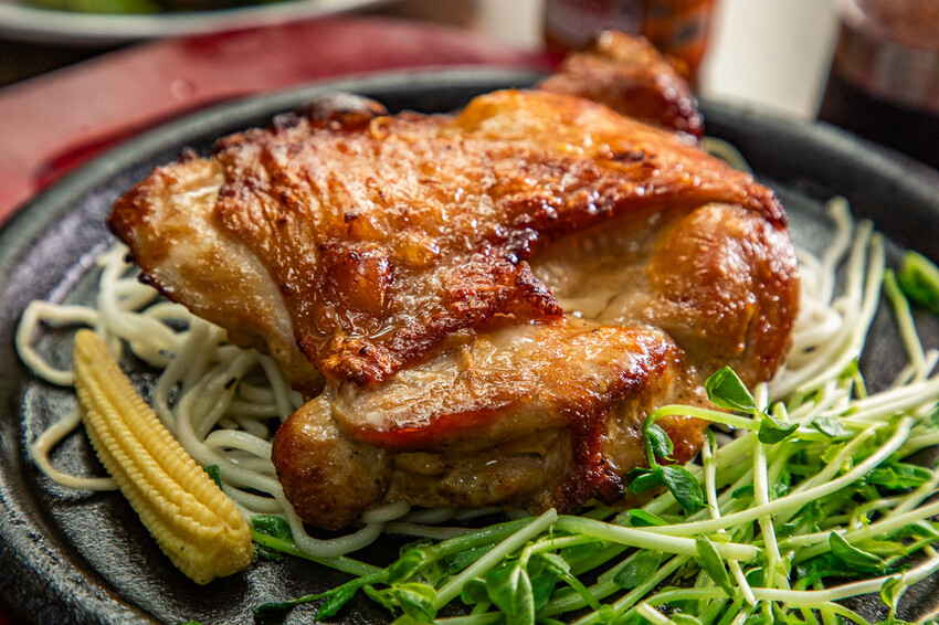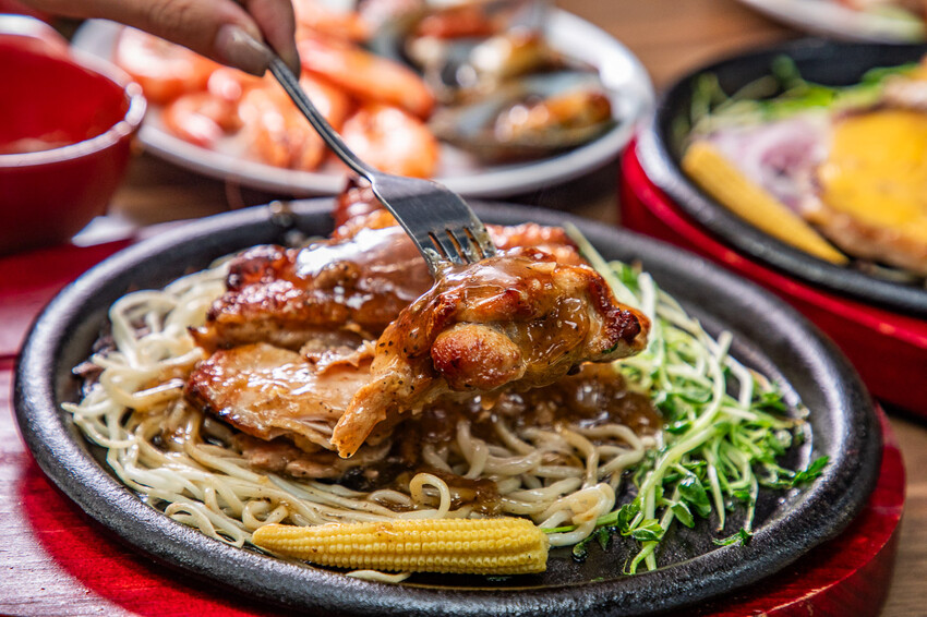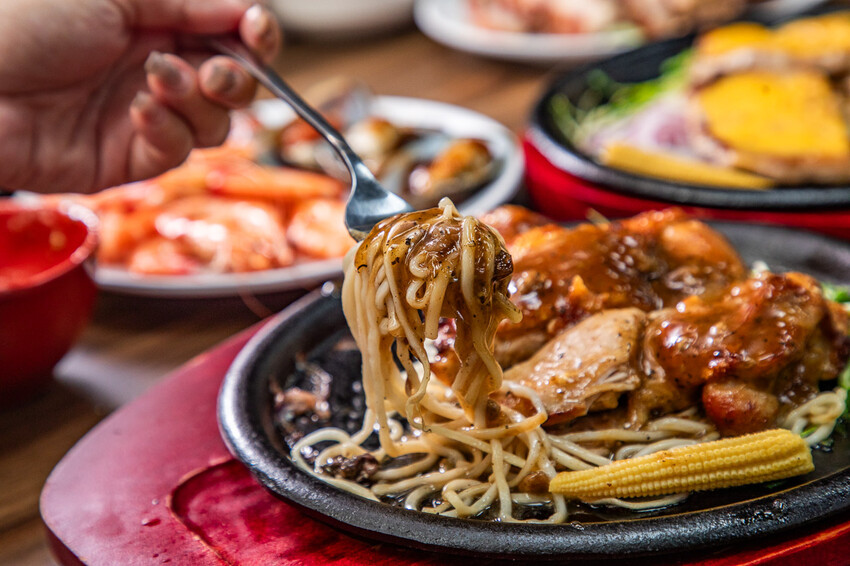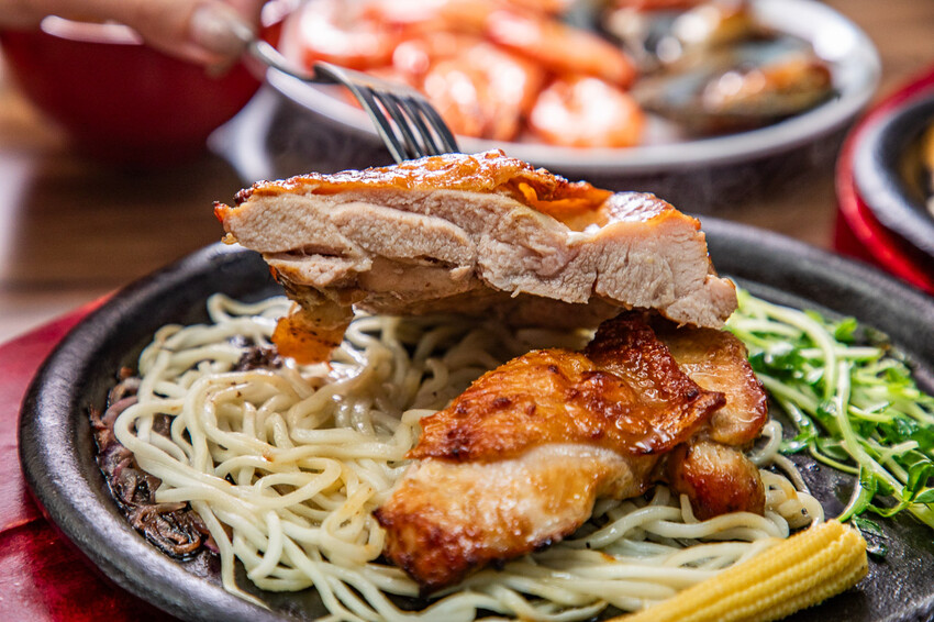 雞腿排,貼心去骨肉質也是相當厚實,加價購只要$99,還有附上鐵板麵,建議可以先吃原味的,雞腿肉相當厚實,一口咬下甘美的肉汁瞬間充滿口腔,雞汁的香濃香氣逼人,好吃極了!