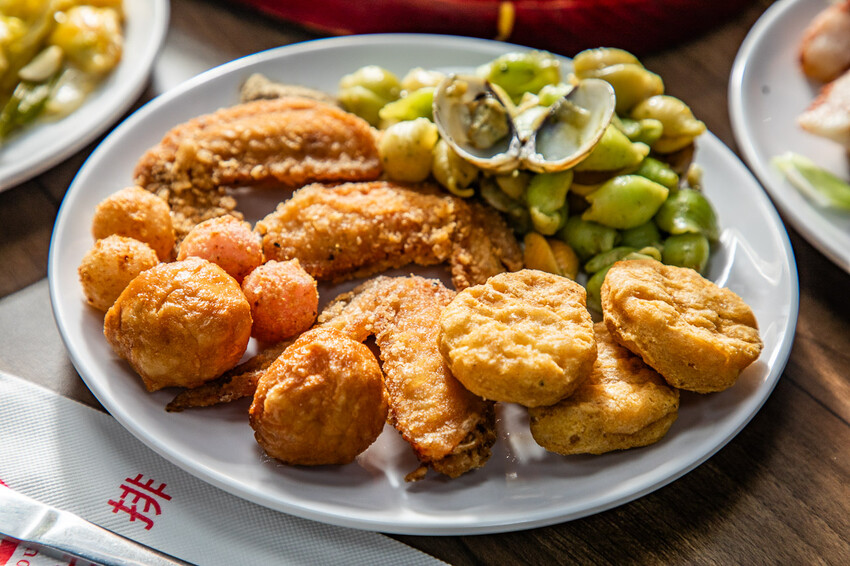 我們點了雞排、起司豬排,一個人$400出頭直接吃成辦桌規格,拿整桌滿滿的大概還不到自助百匯1/3的菜色吧,超澎湃的!