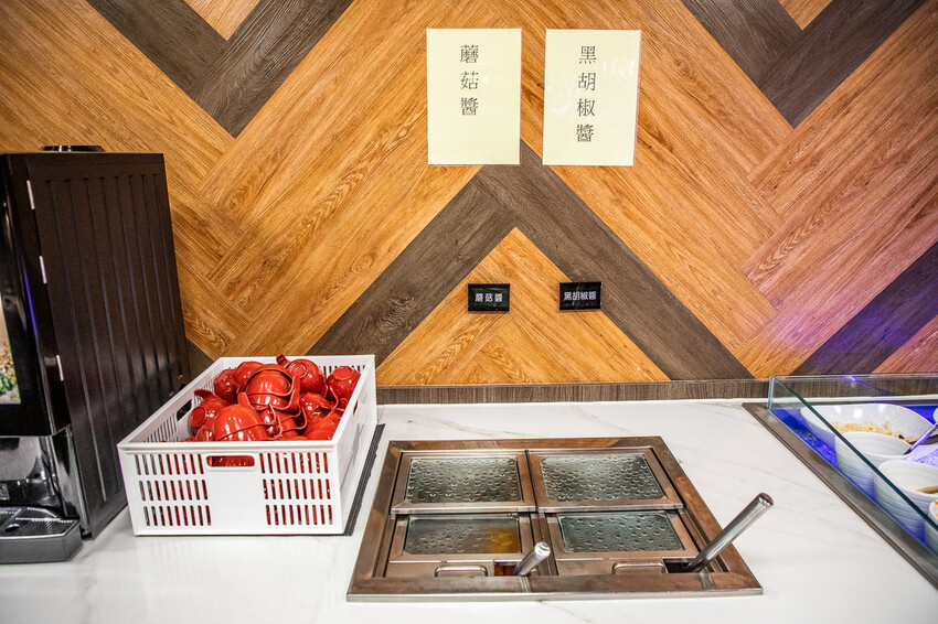 蘑菇醬跟黑胡椒醬也是無限自取,一旁的餐檯上也有台式牛排醬料三寶、現磨黑胡椒跟海鹽,都可以自行取用