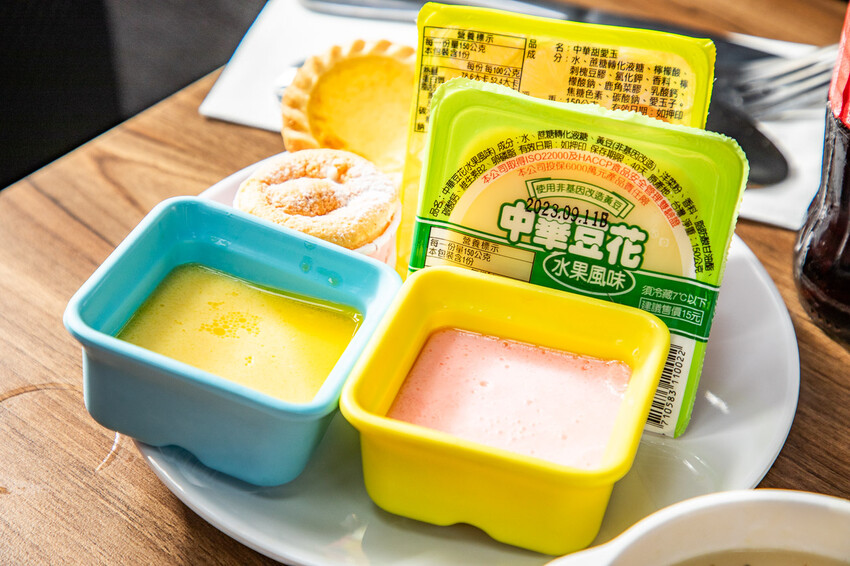甜點我拿了中華豆花、愛玉、自製布丁跟小蛋塔