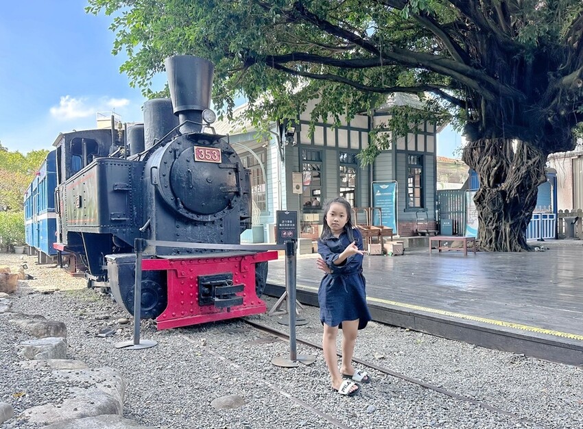 走下火車後,當然也不能錯過跟火車頭拍照喔!我們一家人就在這拍了不少照。