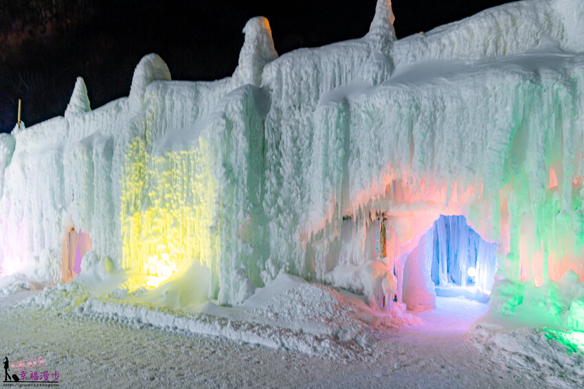 雪洞裡還有絢麗的燈光投射,閃亮亮的很繽紛喔!