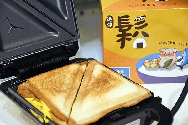 首先拿出熱壓吐司機,把吐司、培根、蛋與鮪魚鬆一起夾在一起,豐富又飽滿的組合,不僅有蛋白質、又有魚、有肉,根本就是山珍海味