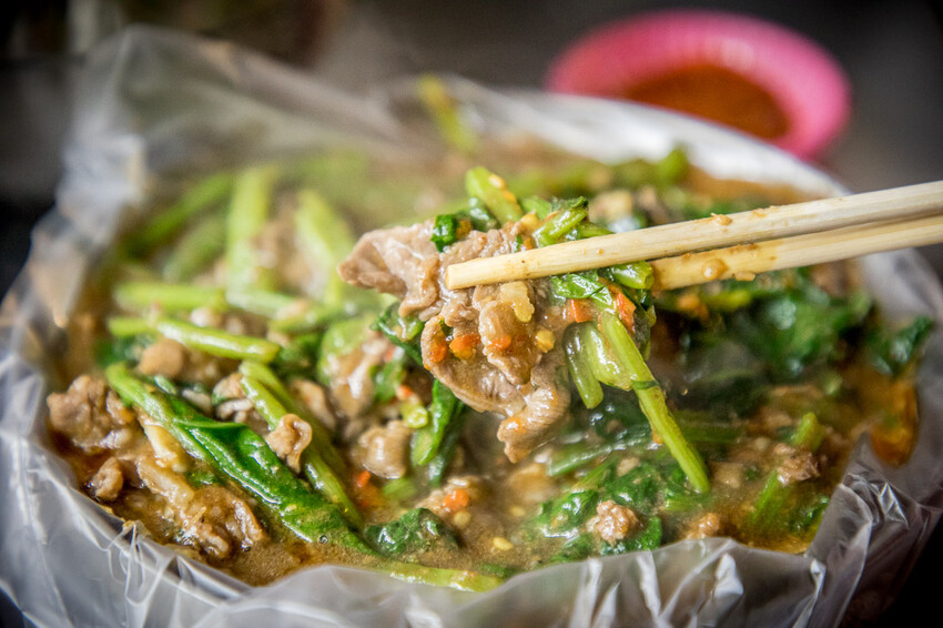 點了羊肉炒麵、青菜炒羊肉、羊肉湯,兩個人吃這樣就很飽了,料理的份量都很多,而且大火快炒那個鑊氣真的很香很迷人