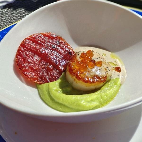 #香煎干貝佐青豆泥
