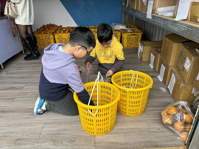 佐佑兩兄弟之前有體驗過採柳丁,這回是採橘子的初體驗,顯得十分興奮。