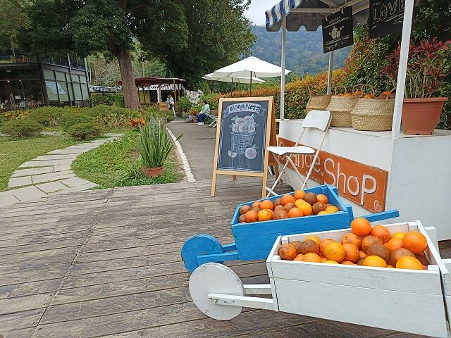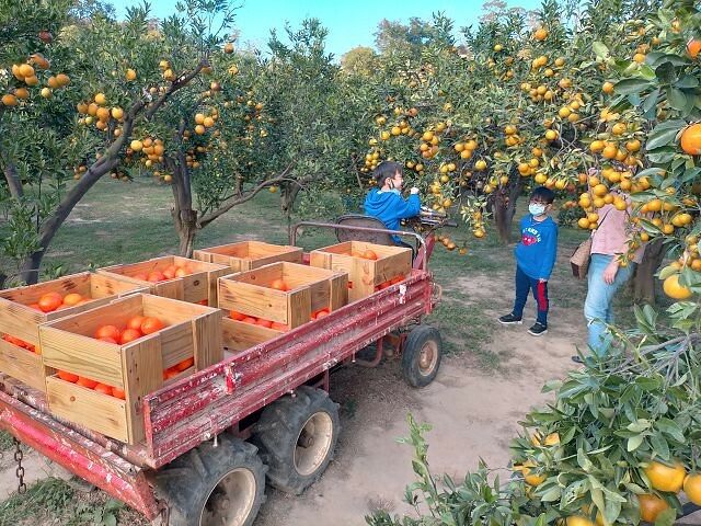 「橙香森林」園區十分廣大,遍植橘子樹,不過黃澄澄的橘子海,當然是季節限定的美景。官方FB上都有公佈採果體驗和果樹拍照的期間。