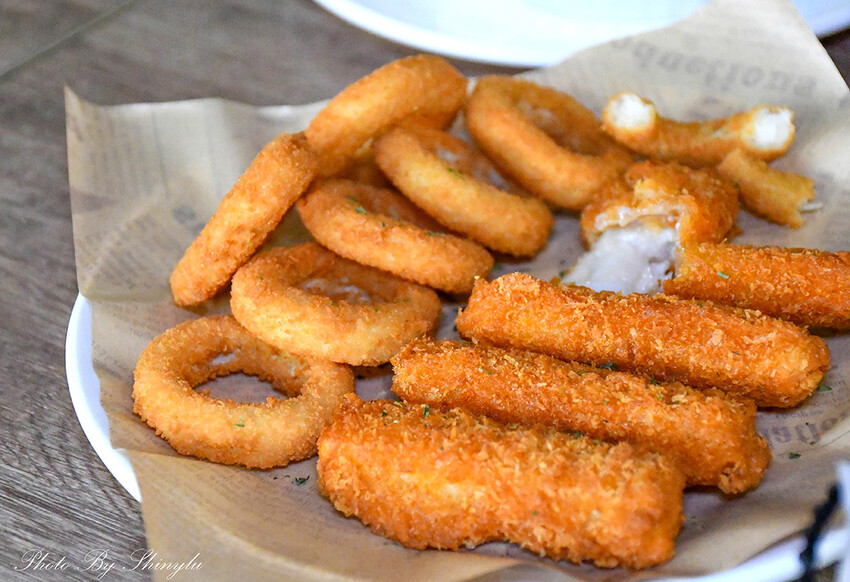 這是我們另外加點的鱈魚條、脆皮洋蔥圈,炸的很剛好,皮酥內軟不會太油膩,小朋友都會很喜歡