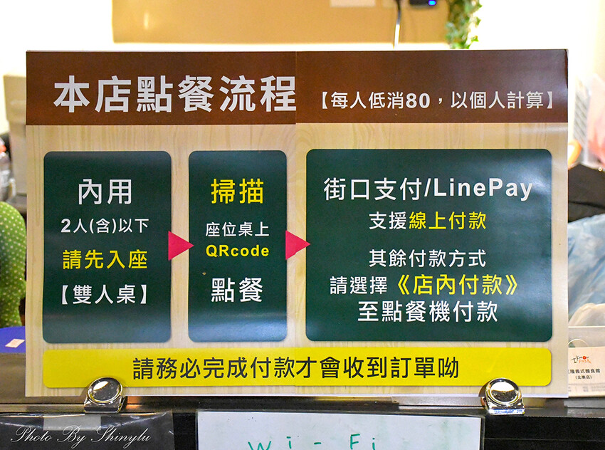 店內很貼心,有張貼點餐流程表給大家參考,其實還滿簡單,只要先找好座位,掃桌上的QRcode,再到點餐機付款就好