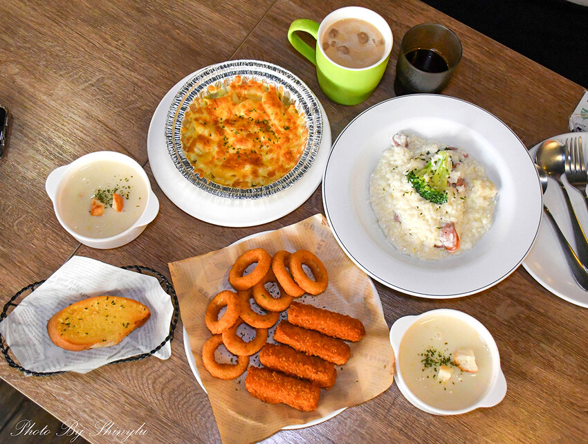 餐點有義大利麵、燉飯及單點炸物,主餐+45元起,即可升級套餐,價格不貴又好吃!是CP值超高的中正區美食小吃、補習街美食必吃義大利麵店家